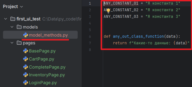 1. В выбранном файле выделите константы, функции, которые необходимо перенести в другой файл: